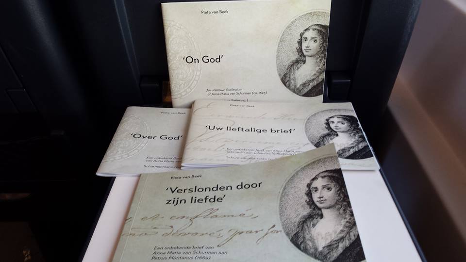 She wrote contributions on Van Schurman’s Neo-Latin poetry in the three-volume work Women writing Latin (New York 2002) as well as in De Utrechtse Parnas (Amersfoort 2003) and the Tydskrif vir Geesteswetenskappe (2009). She published contributions on Van Schurman’s martyrdom in The Low Countries as Crossroads of Religious Beliefs (Brill 2004) and on Van Schurman’s teachers in Historica (2009). In 2013 she started the Serie Schurmanniana with unknown documents by Van Schurman, like a florilegium with sayings on God (nr. 1), letters to Johannes Vollenhoven and Petrus Montanus (nr. 2 and 3) unknown published letters from Rotger zum Bergen (nr. 4), the auction catalogue of the Labadists in Altona, some Latin poems, works of art, etc. etc.